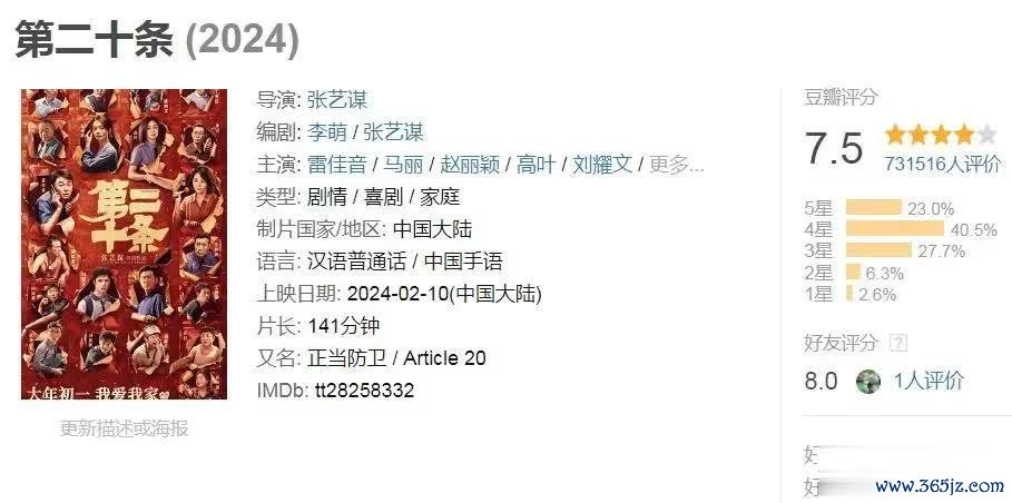 第十名:《第二十条》,评分7.5