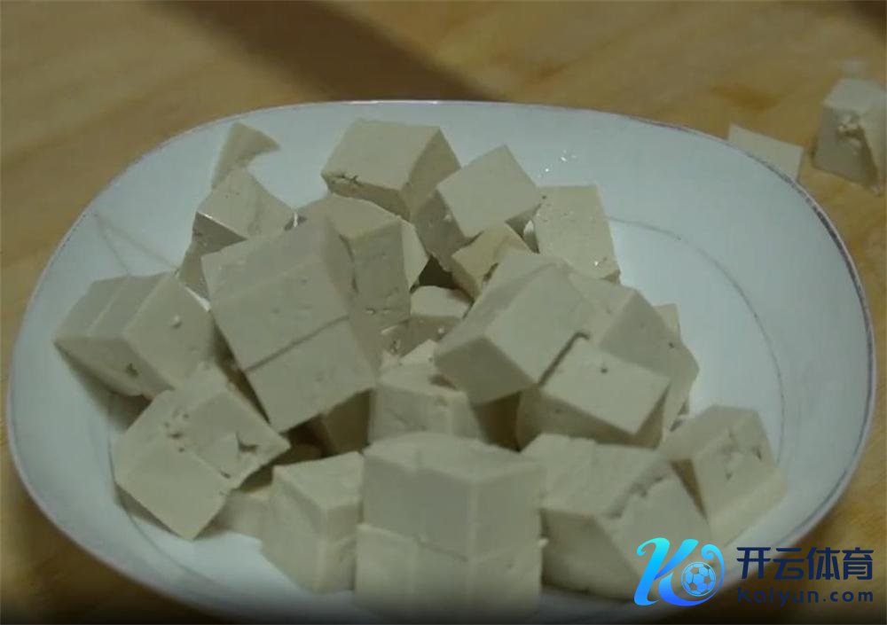 2.老豆腐切片,再切条,终末切成小方块。