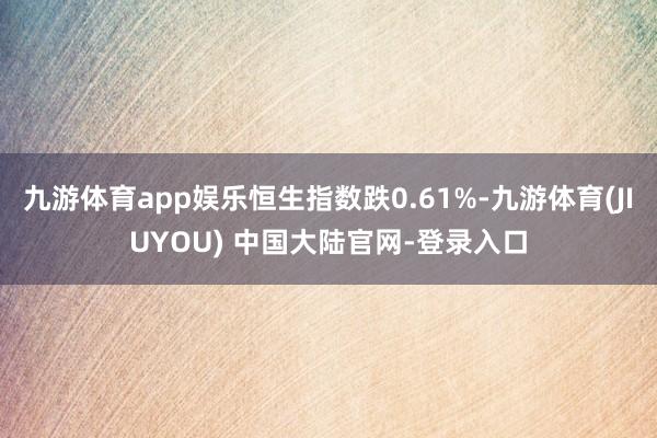 九游体育app娱乐恒生指数跌0.61%-九游体育(JIUYOU) 中国大陆官网-登录入口东说念主民财讯10月6日电,港股午间收盘,恒生指数跌0.61%,恒生科技指数跌1.2%。黄金股逆势拉升九游体育app娱乐,珠峰黄金涨超15%,紫金黄金国外、山东黄金涨超5%;汽车股着落,理念念汽车跌近3%。