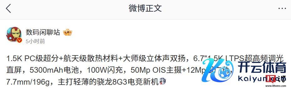 IT之家 12 月 10 日音问九游体育app(中国)官方网站,博主@数码座谈站 本日发文披露,某厂新机将配备 6.7 英寸 1.5K LTPS 超高频调光直屏 + 5300mAh 电板,救济 100W 闪充,领有 50Mp OIS 主摄 + 12Mp 超广角。