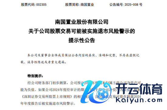 其中,南国置业(002305)公告透露,经公司财务部门初步测算,公司2024年度归母净利润预亏14亿元至19.5亿元,协调四年大亏;归母净钞票展望在-9.15亿元至-14.65亿元,可能在露馅2024年年度论说后被实施退市风险警示。