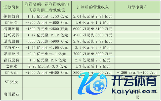 阐述筹商章程,若上市公司最近一个司帐年度经审计的利润总数、净利润以及扣除非频繁性损益后的净利润三者中的最低值为负,且扣除后的生意收入低于一定程序(主板为3亿元,创业板和科创板为1亿元),或经审计后的期末包摄于母公司总计者权利为负值,那么公司股票往返将在年度论说露馅后可能被实施退市风险警示,股票简称前将冠以“*ST”。