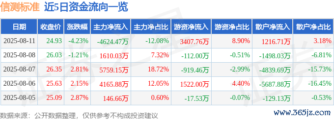 本站音书,截止2025年8月11日收盘,信测法子(300938)报收于24.93元,下降4.23%,换手率9.93%现金九游体育app平台,成交量15.21万手,成交额3.83亿元。