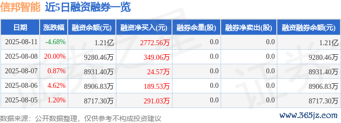 信邦智能融资融券信息清楚,融资方面,当日融资买入5379.68万元,融资偿还2607.12万元,融资净买入2772.56万元,衔接3日净买入累计3146.19万元。融券方面,融券卖出0.0股,融券偿还0.0股,融券余量0.0股,融券余额0.0万元。融资融券余额1.21亿元。