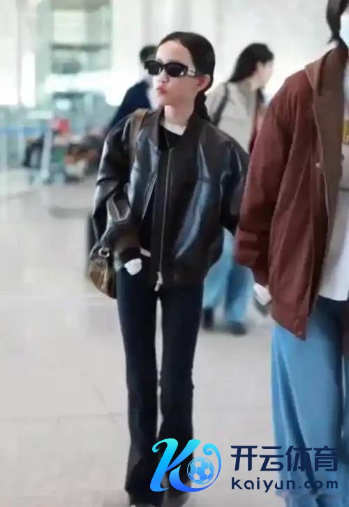 她一稔孤苦皮衣酷炫皆备,下身搭配的一条微喇裤,突显了她小小年岁就有了一对大长腿,何况比例颠倒的好。