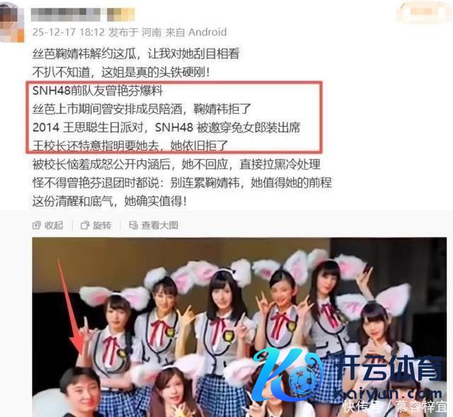 王念念聪再陷丑闻 王念念聪的新丑闻曝光,得从鞠婧祎和丝芭传媒的解约讼事提及。 正本这仅仅一场日常的合约纠纷,中枢争议是两边对合约到期时刻、收入分拨还有签名真伪的不合。 就在两边吵得不行开交时,前SNH48成员曾艳芬站出来力挺鞠婧祎,爆出了更惊东说念主的内幕。