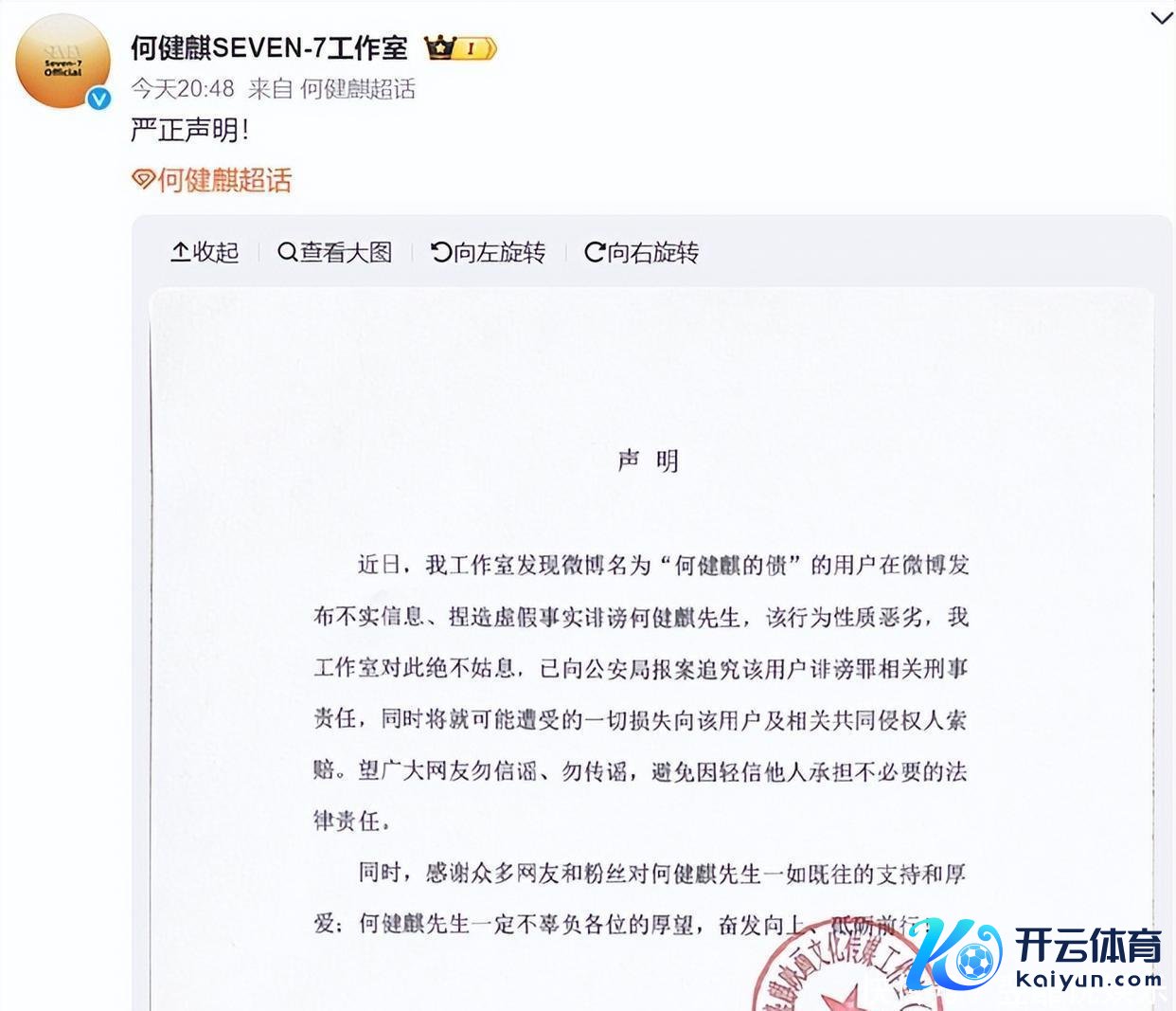 举报视频发出的两小时内,何健麒责任室就发布严正声明,定性举报为“抓造失实事实的降低”,并称已报警讲求其刑责、索赔赔本,敕令公众勿传谣。