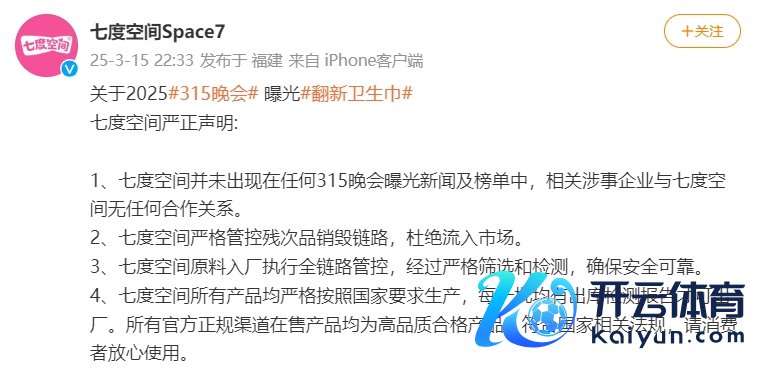 3·15晚会曝光翻新卫生巾,七度空间:与涉事企业无配合九游体育登录入口jiuyou官网,严格管控残次品断送链路3·15晚会曝光翻新卫生巾,七度空间:与涉事企业无配合,严格管控残次品断送链路