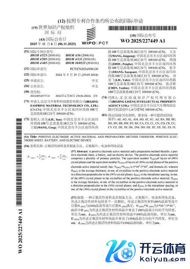 证券之星音讯,凭证企查查数据泄漏当升科技(300073)公布了一项海外专利苦求,专利名为“正极活性材料过甚制备重要、正极极片、电板和用电缔造”,专利苦求号为PCT/CN2024/096120,海外公布日为2025年11月6日。